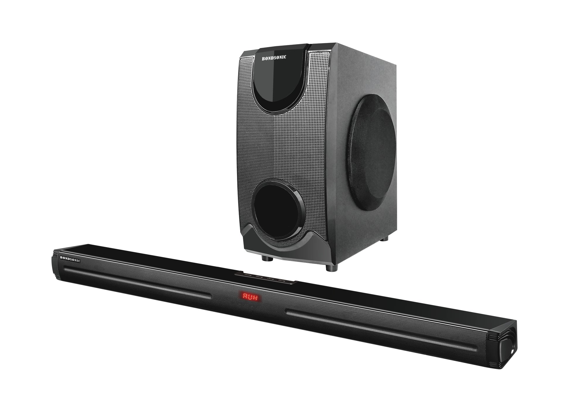 Transform your movie nights and music sessions with the Bondsonic MIC-7001 Multimedia Soundbar System. Designed for rich, room-filling sound, this system combines a sleek soundbar with a deep bass subwoofer to deliver powerful audio clarity. Whether you're watching TV, gaming, or streaming from your phone, enjoy immersive sound with Bluetooth connectivity, USB playback, and multiple input options for effortless use.